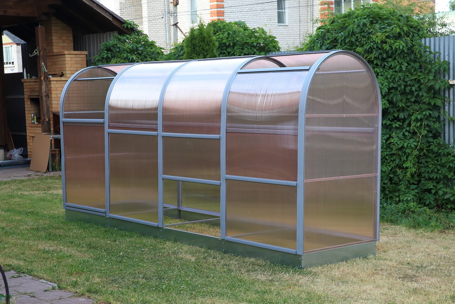 Чтобы собрать парник любой длины, мы придумали модульную конструкцию с удлинением. Вы можете купить Мини теплицы «Прогресс-Мини» и «Прогресс» длиной от 2 м.