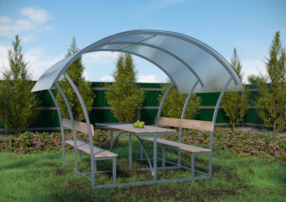 Каркас беседки изготовлен из оцинкованного металла, который не требует подкрашивания и будет радовать эстетичным внешним видом в течение длительного времени.