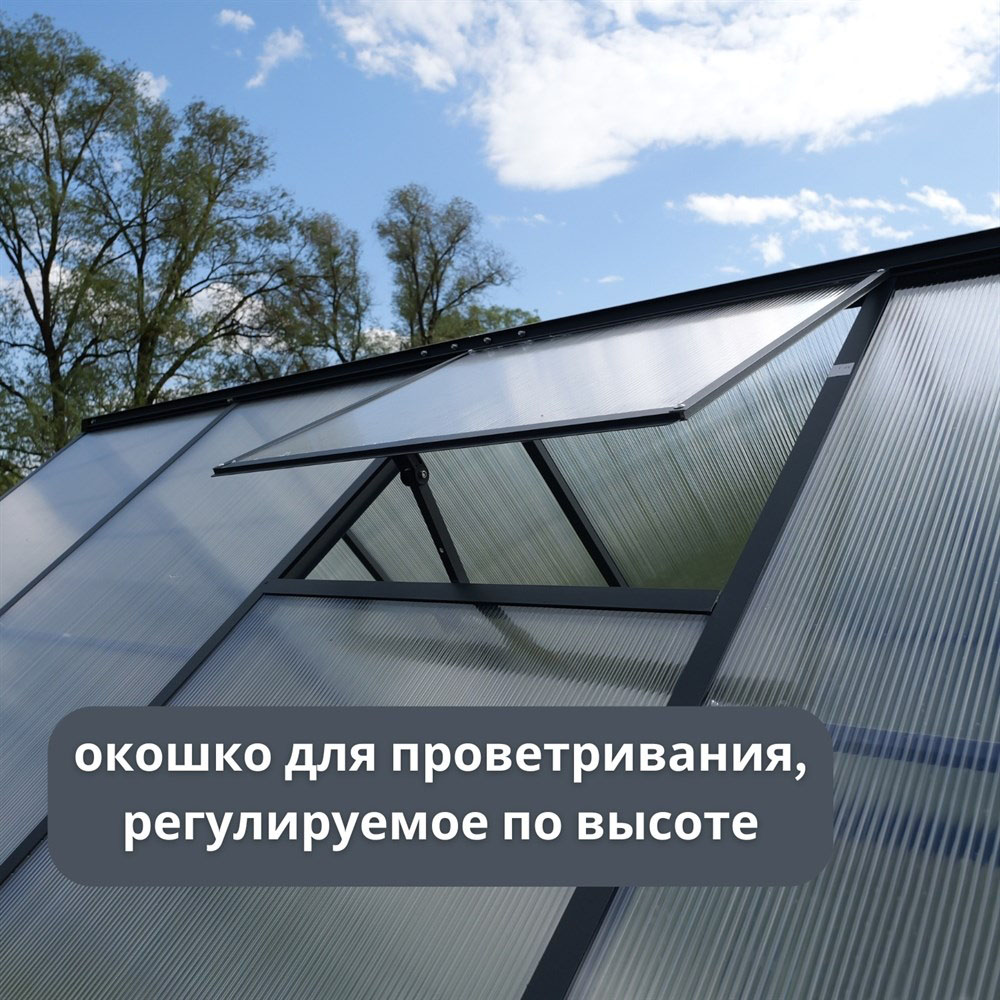 Наличие окошка для проветривания позволяет регулировать температуру и влажность внутри теплицы, обеспечивая оптимальные условия для роста растений. Это особенно важно в жаркие летние дни или в периоды интенсивного роста растений.