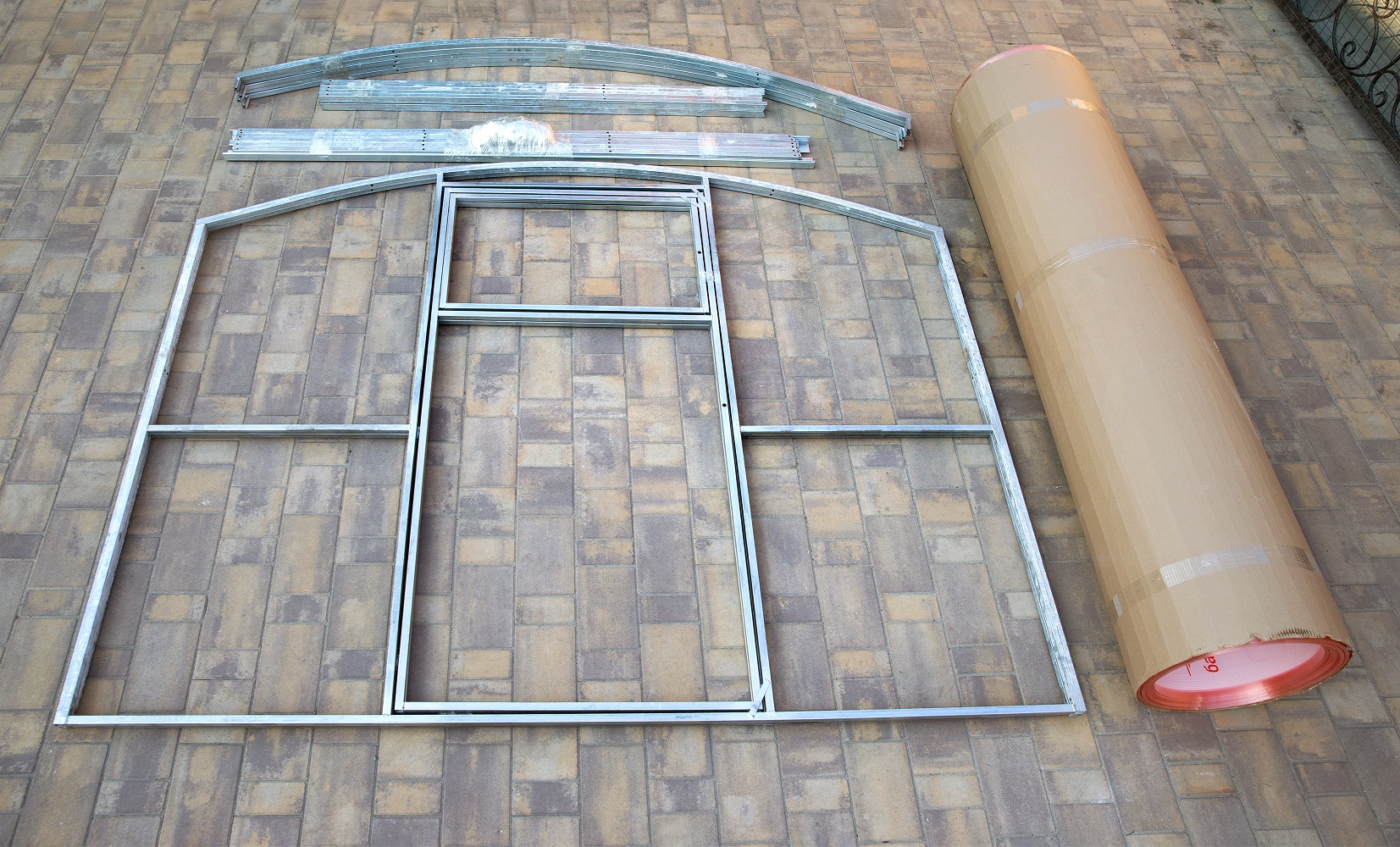 В комплекте все необходимое для сборки: фурнитура, болты и саморезы, металлический конек.