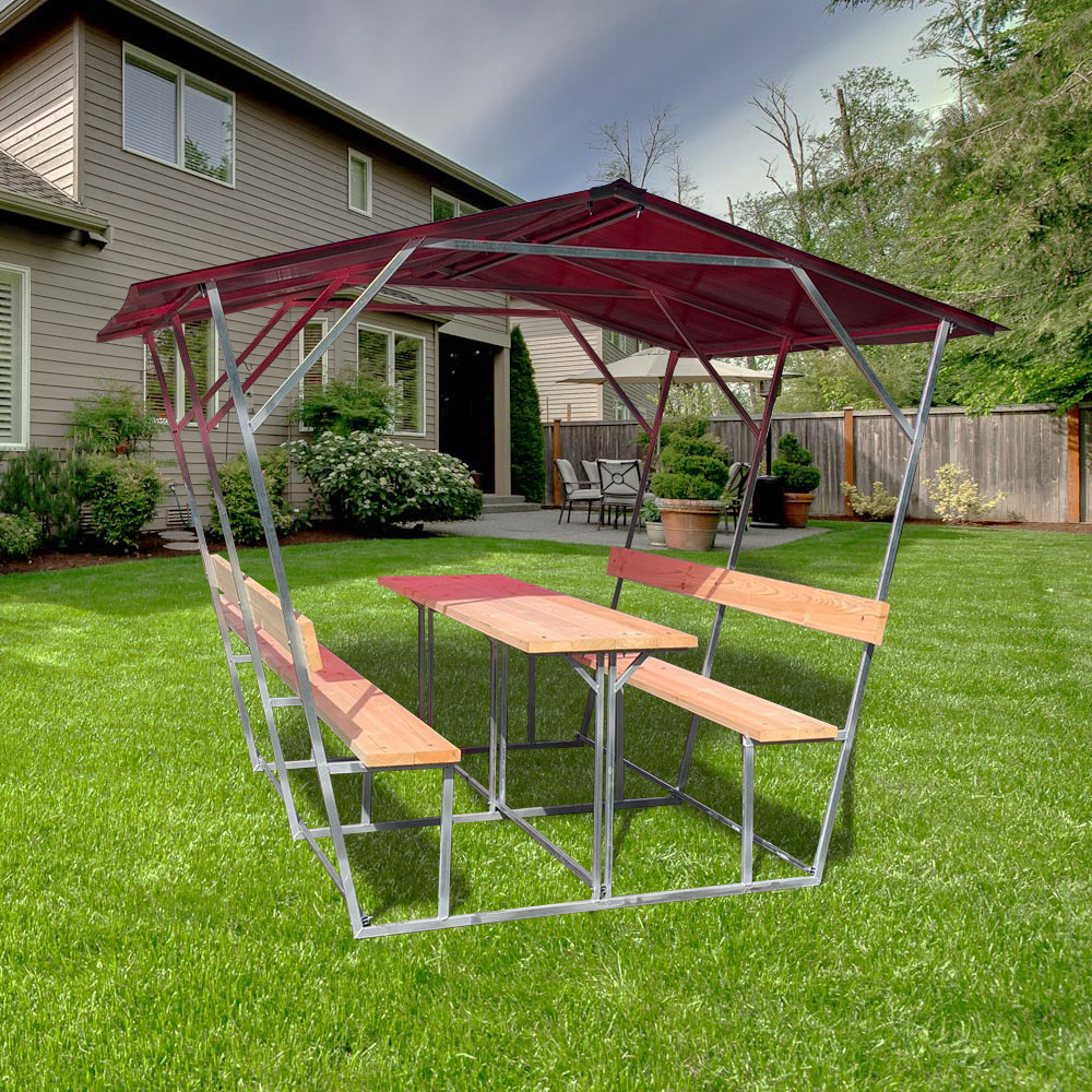 Каркас беседки изготовлен из оцинкованного металла, который не требует подкрашивания и будет радовать эстетичным внешним видом в течение длительного времени.