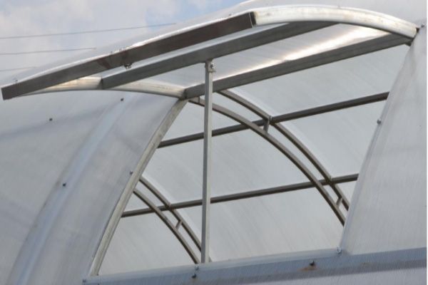 Сверхпрочные двойные дуги сделаны из мощной стальной трубы 40х40 мм. Дугообразные фермы соединены между собой прогонами.