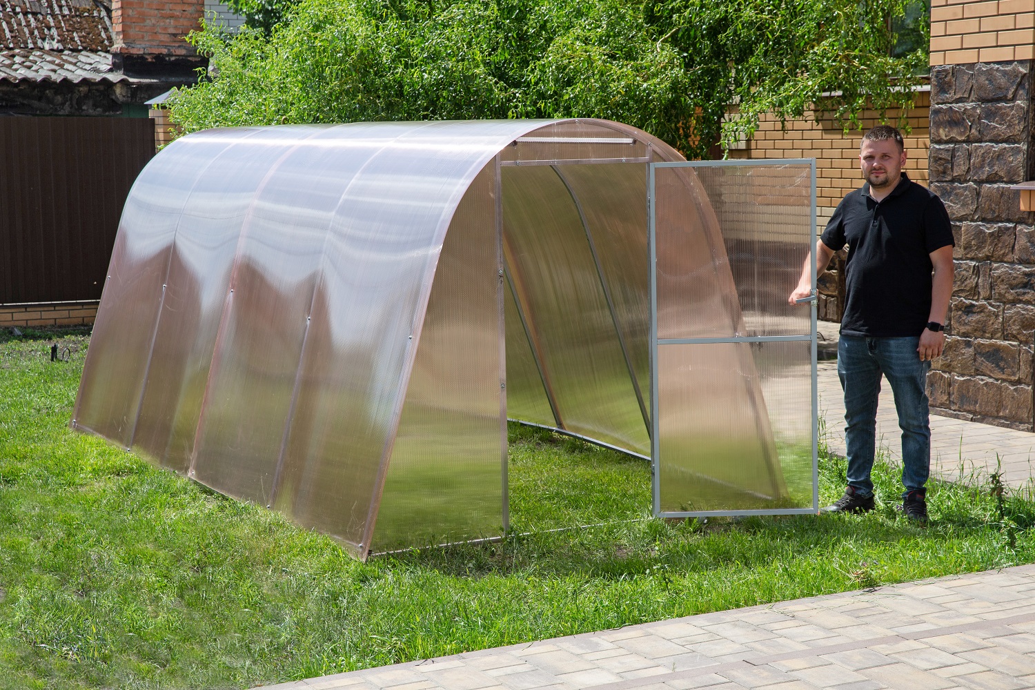 Монтаж теплицы (каркас + поликарбонат) «Оптима» 4 м