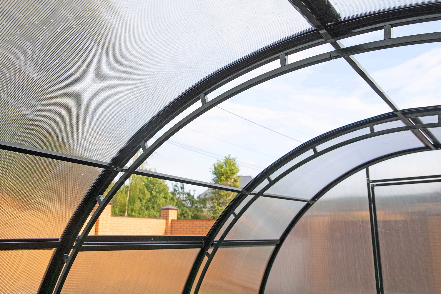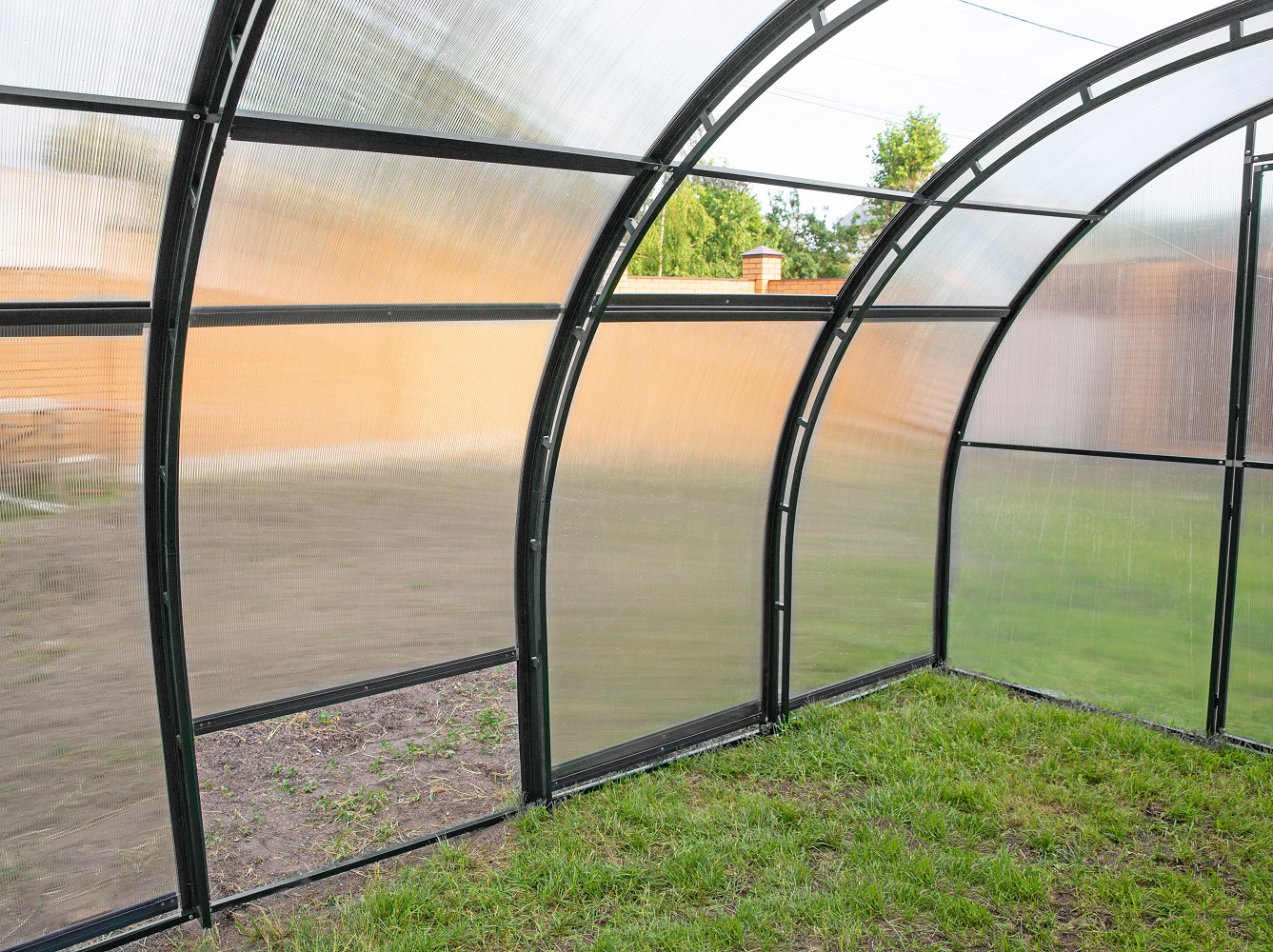 Теплица «Прогресс» - уникальная теплица, так как в ней полностью открывающееся крыша и бока. Каркас теплицы разборный, сделан из профильной оцинкованной трубы с сечением 20х20 мм (двойной) покрытый порошковой краской. Направляющие профиля и ручки выполнены из прочного полимера с УФ-защитой, закрывают соты поликарбоната, долговечны, удобны в эксплуатации и не нарушают эстетический вид теплицы. Ширина каждой сдвижной секции 1 м, что увеличивает надежность конструкции.