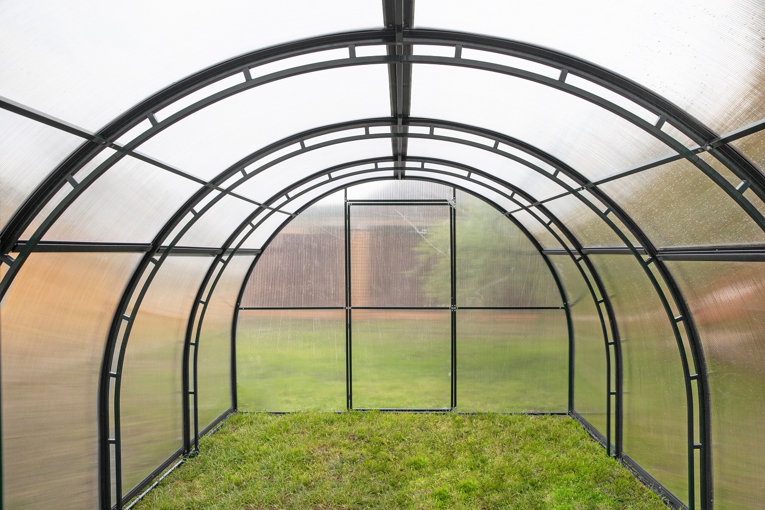 Теплица имеет 2 двери. Теплица устанавливается на фундамент, типа брус (приобретается отдельно, в комплект не входит).